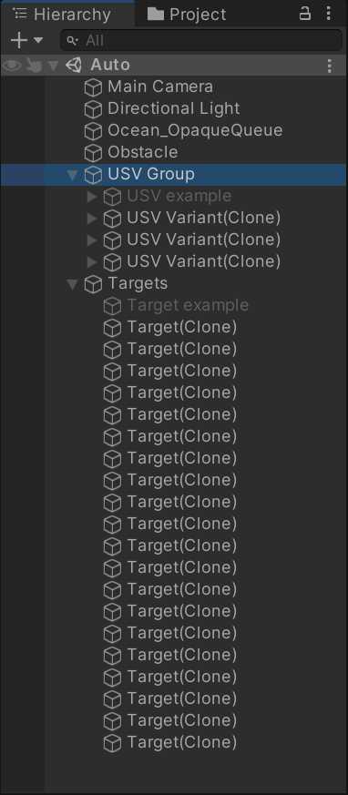 USV Group用于生成、控制无人艇Navigation.cs创建无人艇, 并实时更新无人艇控制的参考输入, 即导引算法USV Variant预制体KinematicUSV.cs无人艇运动学模型Disturbance.cs随波浪飘动. (crest 海洋环境有现成的效果2)MoveController.cs创建ADRC控制器对无人艇的速度和航向进行控制class ADRCADRC 控制器