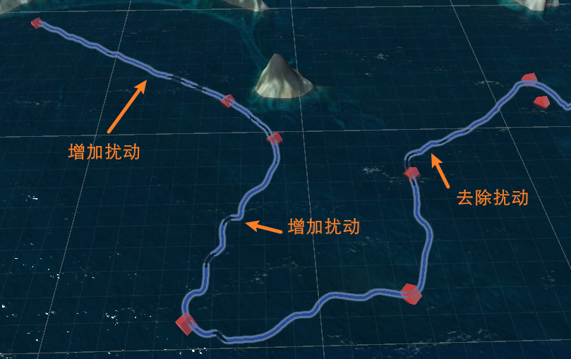 后来发展, 这种扰动作用的实现是直接修改船的位置, 不会影响 KinematicUSV 里面的速度和角度, 进而也不会被(速度和角度)控制器观测到.