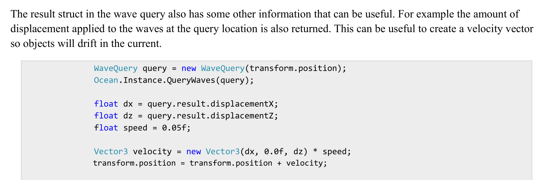 其实波浪扰动应该是获得一个力和力矩, 然后通过 Unity 里的刚体组件施加.
